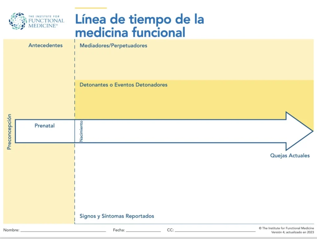 Esta herramienta es un método estructurado que ayuda a los profesionales de la salud a comprender y mapear los eventos clave en la vida de un paciente que podrían influir en su estado de salud actual. Esta herramienta organiza cronológicamente la información de salud, destacando cómo ciertos eventos o factores desencadenantes pueden haber contribuido al desarrollo de condiciones o enfermedades. Este enfoque permite una visión más profunda de las causas subyacentes de las enfermedades, facilitando intervenciones más personalizadas y efectivas.